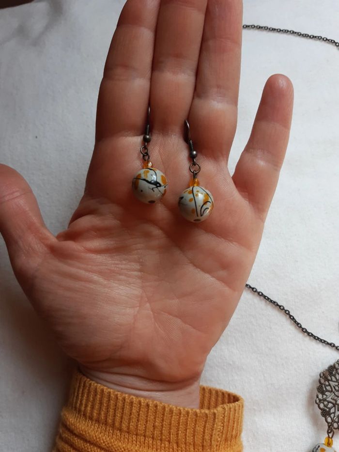 Ensemble bijoux femme fantaisie boucle d'oreille et sautoir fait main - photo numéro 3