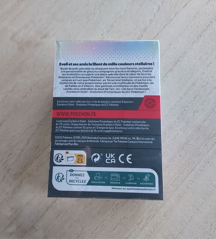 ✅ Les articles de cette vitrine sont véritables et leur numéro de série a été vérifié. 🛄 Les articles de cette vitrine ont été mis sous blister par le fournisseur officiel, ils n’ont jamais été ouverts. 💬 Le prix des articles et des réductions sur les lots sont négociables avec modération. Pour plus d’information, veuillez nous contacter directement avec la messagerie. L'article contient : Un bundle évolution prismatique : -6 boosters (6xEV8.5) #pokémon #pokemongo #pokemon #pokemoncommunity #pikachu #nintendo #toulouse #pochama #tipoulf #piplup #pokemontcg #pokemonart #pokemons #pokemoncards #retrogaming #charizard #game #pokemonxy #blastoise #videogame #player #games #france #pokemonfrance #pokemonx #pokemontradingcardgame #pokefan #collection #gamergirl #pokemonmaster
