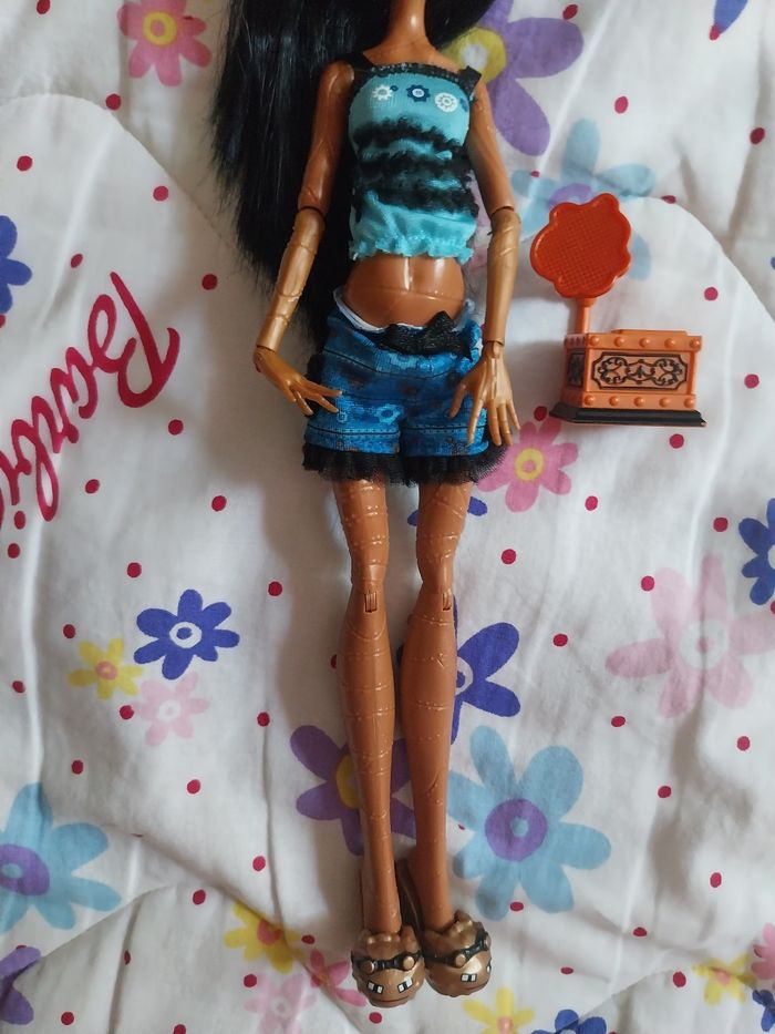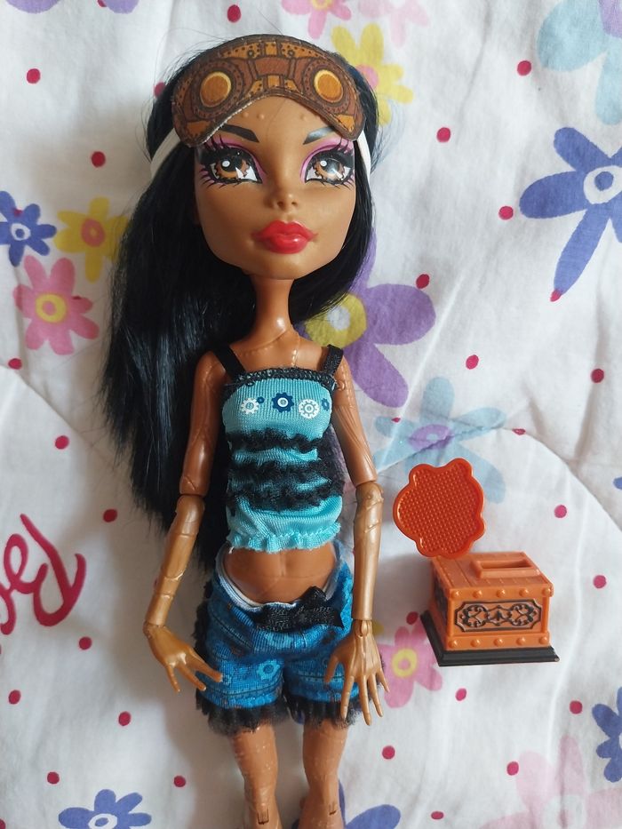 Non négociable ♡ Voici ma poupée Robecca Steam de la collection Dead Tired 2011 de Monster High. Cette poupée aux cheveux noirs a un look vraiment unique avec ses détails steampunk. Elle porte un haut bleu et un short en jean, ainsi que des chaussons marron. Ses accessoires comprennent un tourne-disque et son cache-yeux pour la nuit. Elle est en très bon état général. 40€