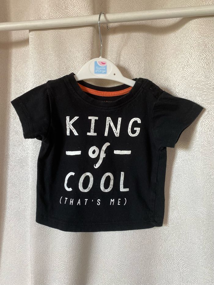 T-shirt noir manches courtes imprimé blanc king of cool that's me Taille 3-6 mois J'ai mis dans la taille 6-9 mois à cause de la stature de 68 cm Primark