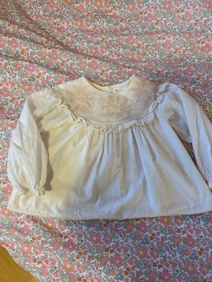 Blouse écru plumetis Zara - photo numéro 1