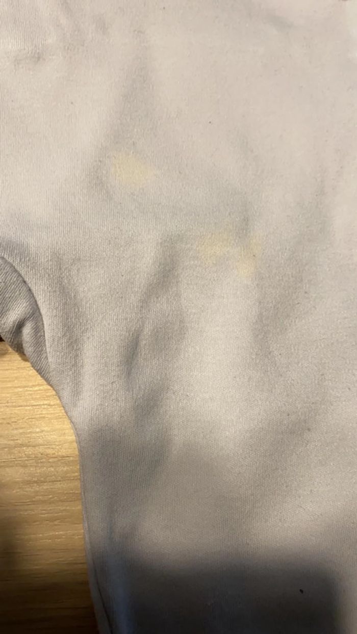 23 mois il n’a jamais été porté mais légère tache voir photo peut être le fait d’être resté au placard