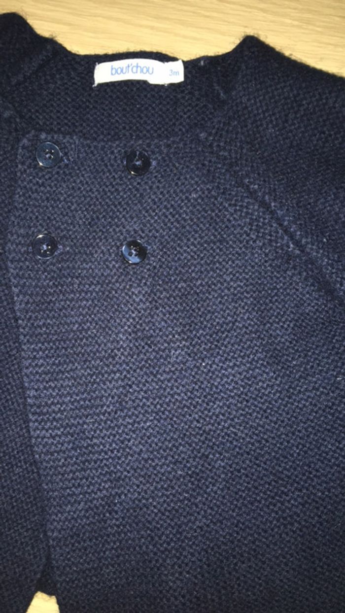 Gilet point mousse bleu marine avec laine - photo numéro 3