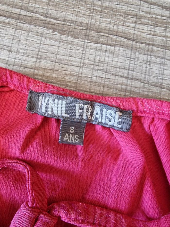 Robe rose taille 8 ans Vynil Fraise 100% coton Hauteur totale 62 cm environ TBE #Connie8ans