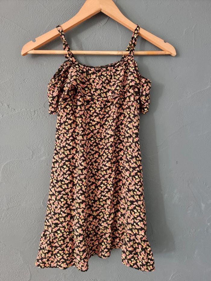 Robe légère taille 7-8 ans Fines bretelles et épaules dénudées, idéal pour l'été, motif floral Tex 100% viscose Hauteur totale 70cm environ TBE #Connie8ans