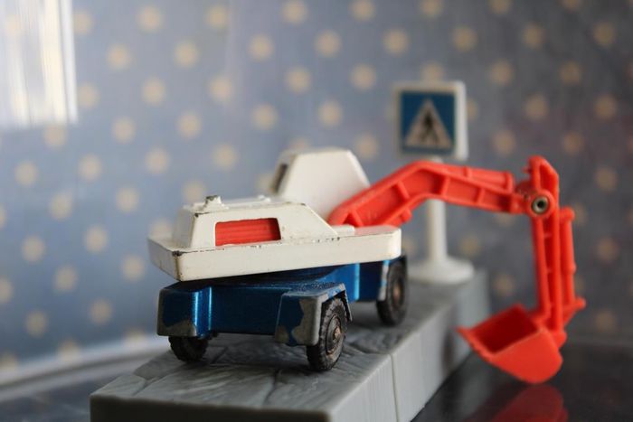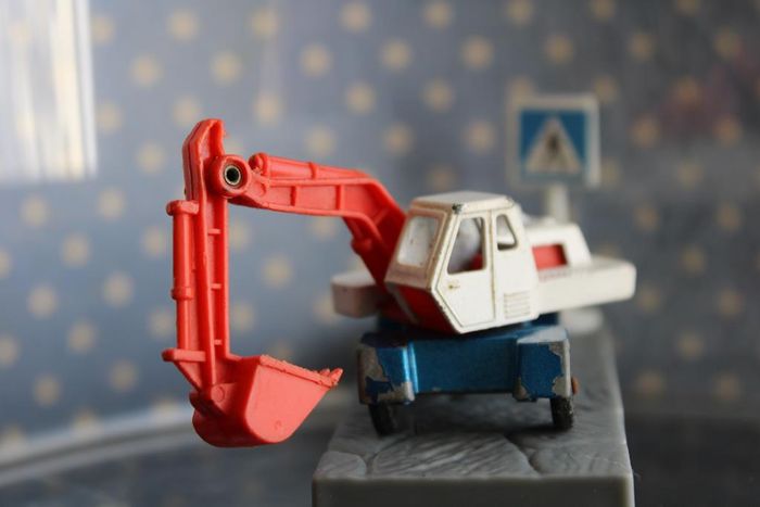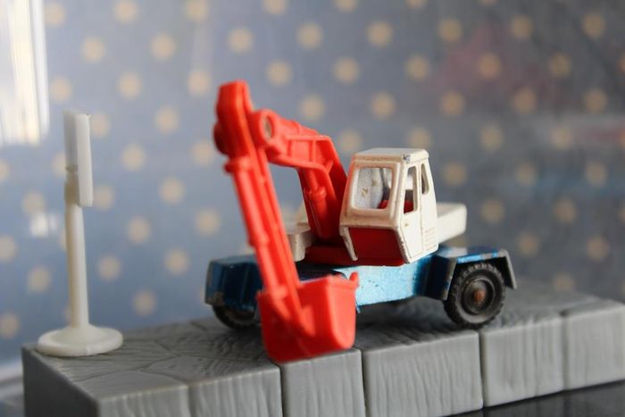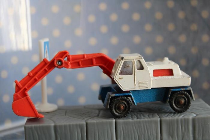 Pelle mécanique miniature Modèle : Digger Echelle : Environ 1:100 Couleur : Blanc et bleu Chassis : Métal peint en bleu Fabricant : Corgi Jouet vintage des années 70. Moulage repris par hot wheels pour une production de 1994 à 1998 En état de jeu. La tourelle pivote Les axes de roues ne sont pas tordus Rares manque de peinture. Le bras articulé en plastique est tordu Réponds avec plaisir aux demandes d'informations complémentairre Réponse rapide envoi soigné dans les meilleurs délais
