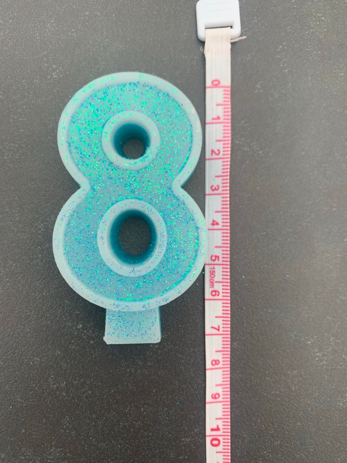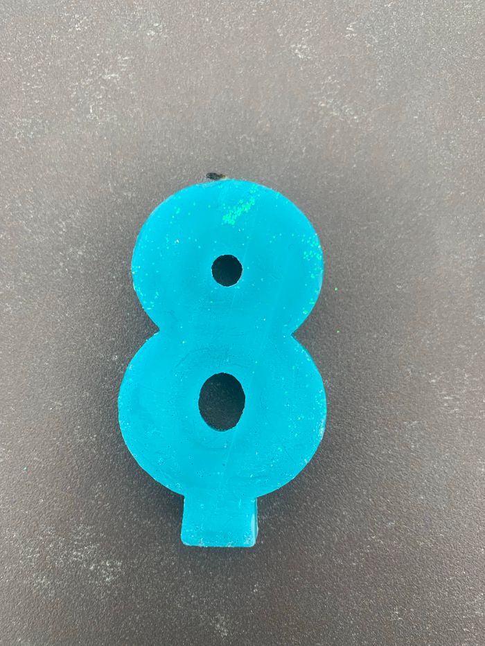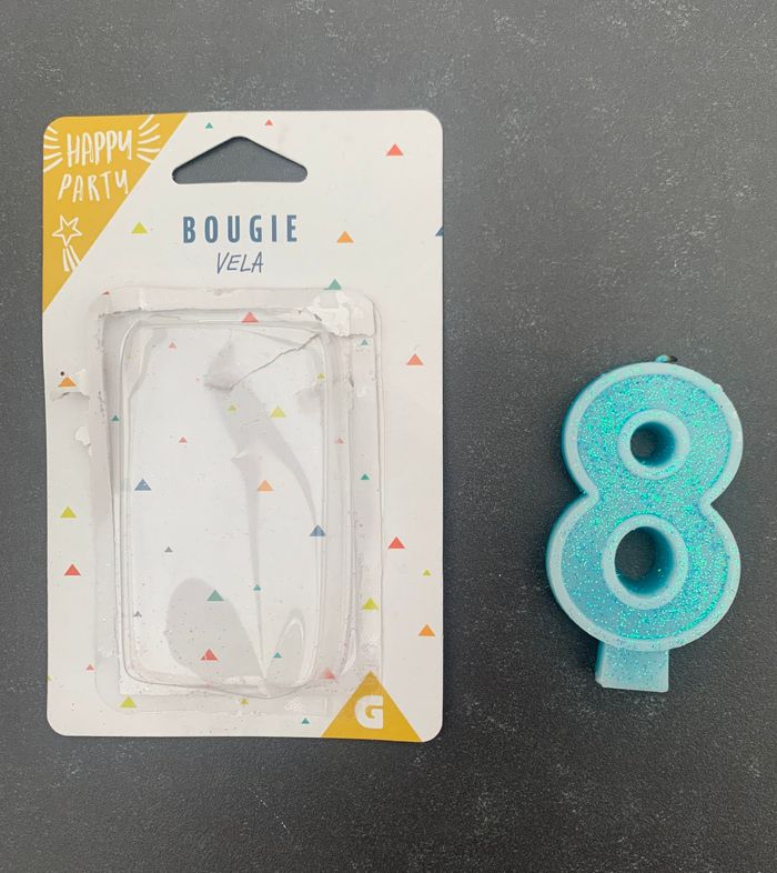Bougie 8 ans, de couleur bleu à paillettes. Utilisée 1 seule fois. Hauteur 7,5 cm. Envoi rapide et soigné, réduction automatique dès 2 articles sélectionnés dans mon dressing. Mes autres ventes ici : #diversugolola