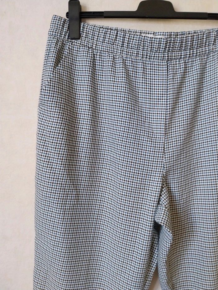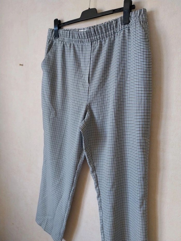 Pantalon léger Jacquard blanc rayé noir et bleu Taille entièrement élastiquée Taille 48 Tour de taille 48cm étiré 59cm Longueur 102cm Très bon état Primark 📦 Envoi rapide et soigné #sigrid14femmes48 #sigrid14mai2025