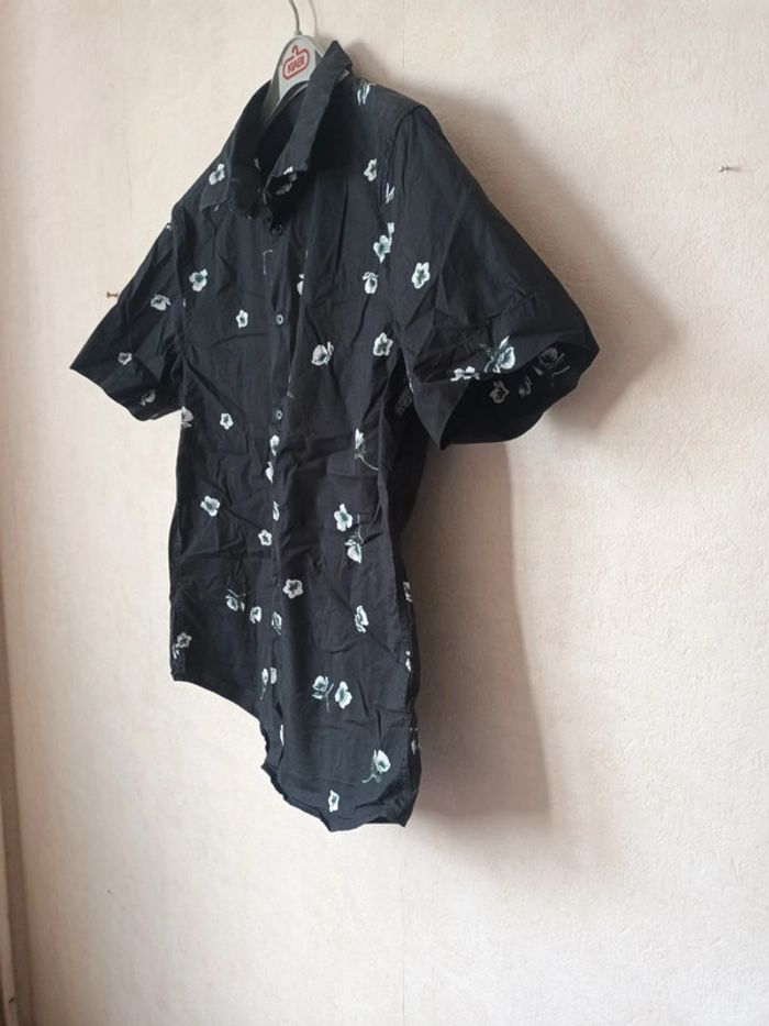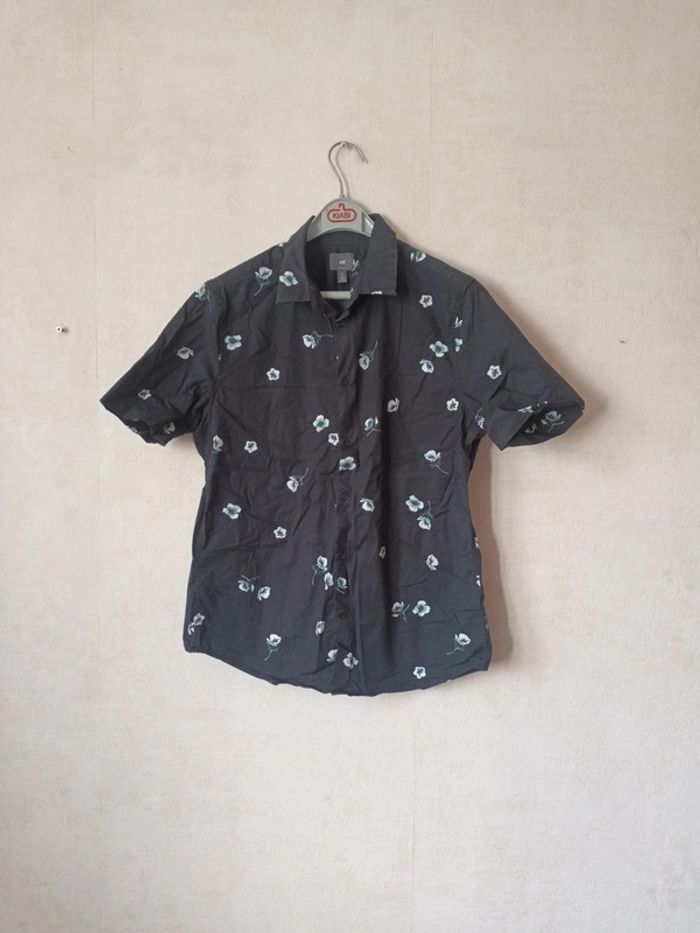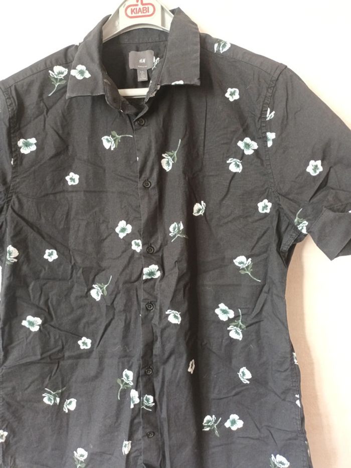 Chemise homme Manches courtes Noir fleur blanches Taille L H&M Très bon état Envoi rapide et soigné #sigrid14hommeL #sigrid14mai2025