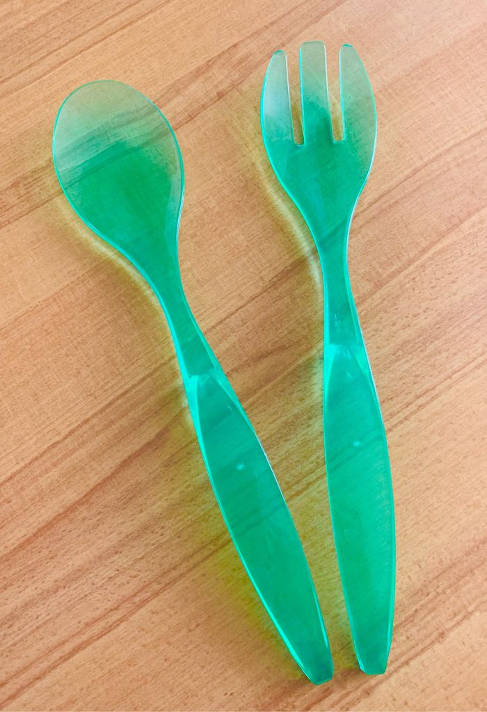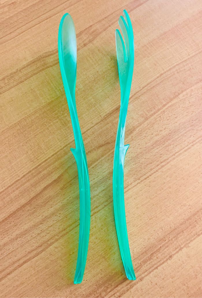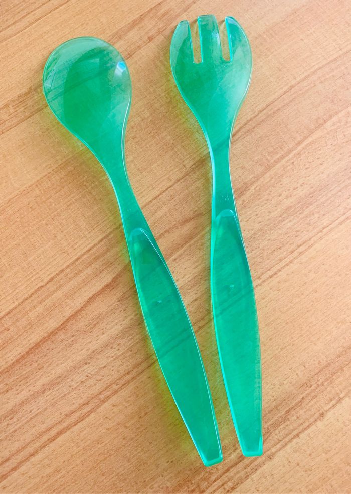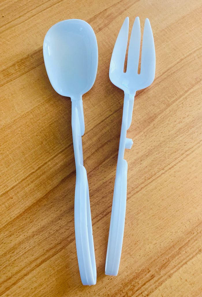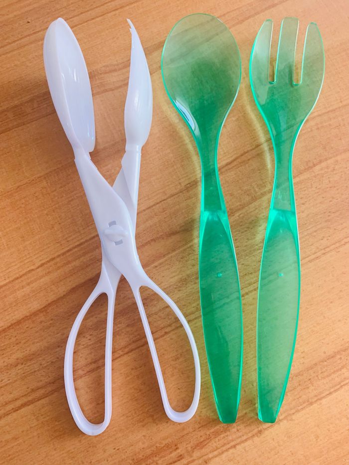 Lot pince + 2 couverts à salade en plastique - photo numéro 1