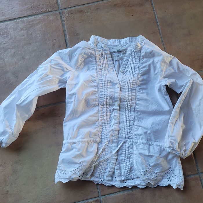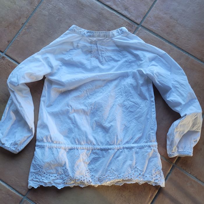 Chemise H&M 8-9 ans blanche. Broderie et broderies anglaise sur le bas. Lien au niveau de la ceinture. Finition manches élastiques. Très bon état. Envoi dans la journée en mondial relay ou chronoshop2shop.