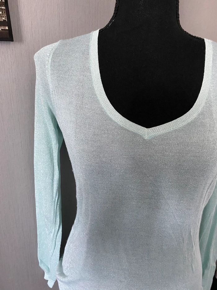 Camaïeu Pull léger en V vert menthe brillant Taille 2 - photo numéro 1