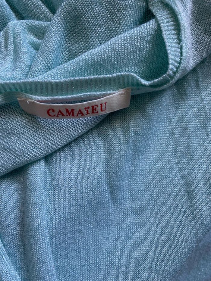 Camaïeu Pull léger en V vert menthe brillant Taille 2 - photo numéro 2