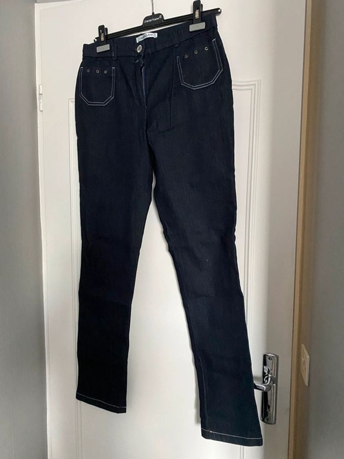 Jean bleu brut Christine Laure avec ligne argenté sur les bords extérieurs - photo numéro 7