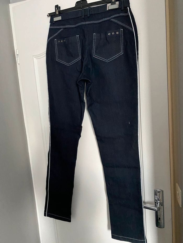 Jean bleu brut Christine Laure avec ligne argenté sur les bords extérieurs - photo numéro 4