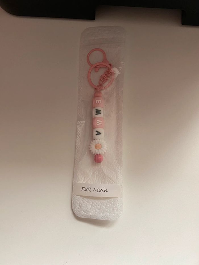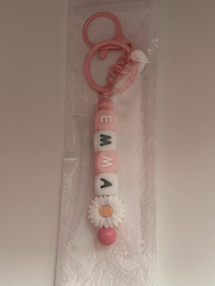 Fait main à la demande Envoyez moi un message avec le texte / prénom que vous souhaitez et couleur Je vous enverrai une photo du porte clé avant achat