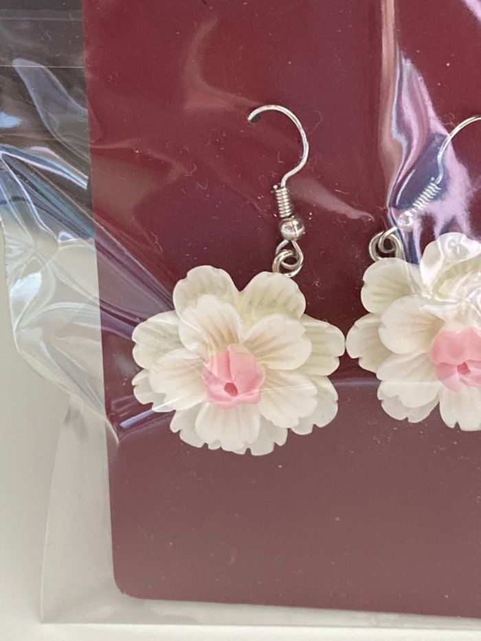 Boucles d’oreilles crème à fleurs - photo numéro 1