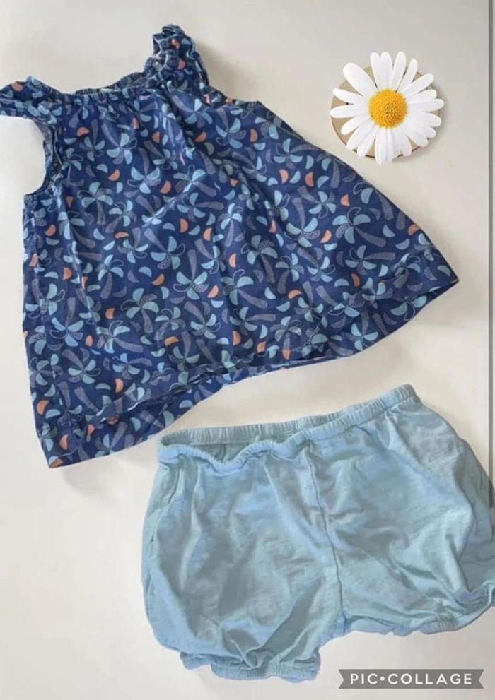 Ensemble short bleu et tee shirt Marque obaibi très bon etat Taille 3ans #ludie8635_3ansfille