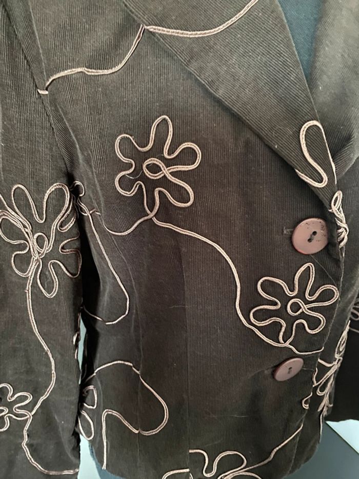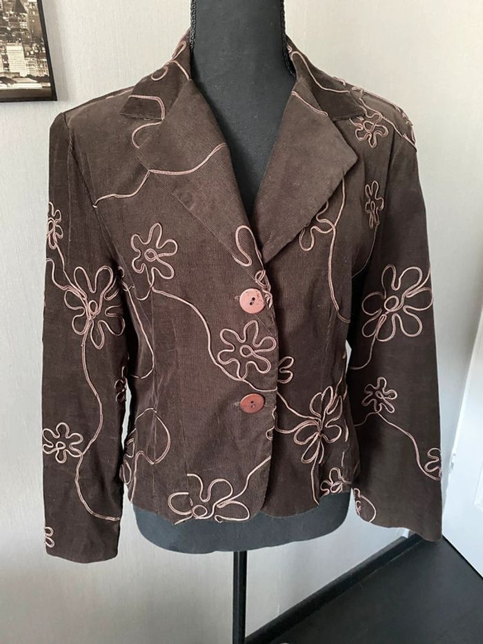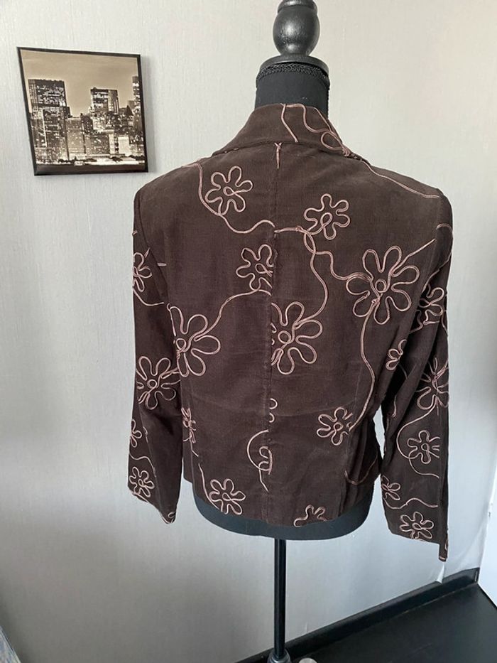 Veste légère marron en velours côtelé avec fleurs - photo numéro 2