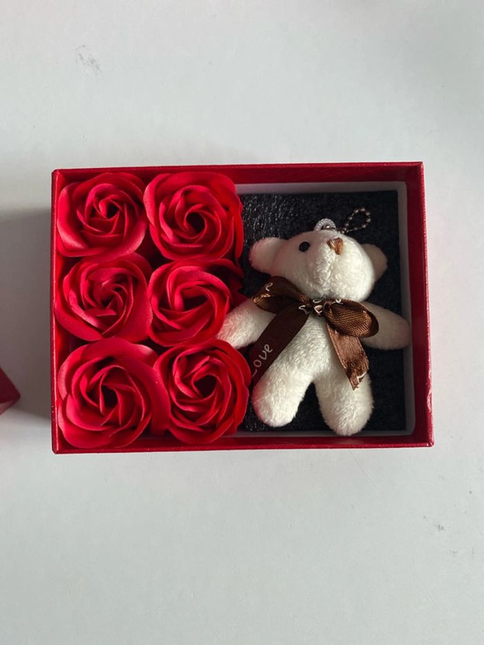 Coffret amour saint Valentin roses éternelles et ourson - photo numéro 2