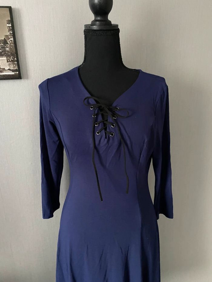 Très joli robe  bleu marine avec cordon sur le devant - photo numéro 1