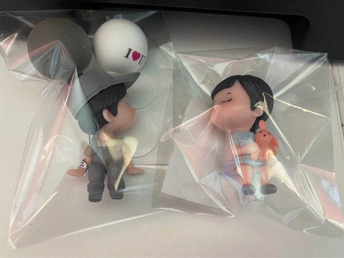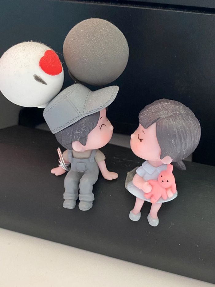 Lot de 2 Petits personnages amoureux assis - photo numéro 1