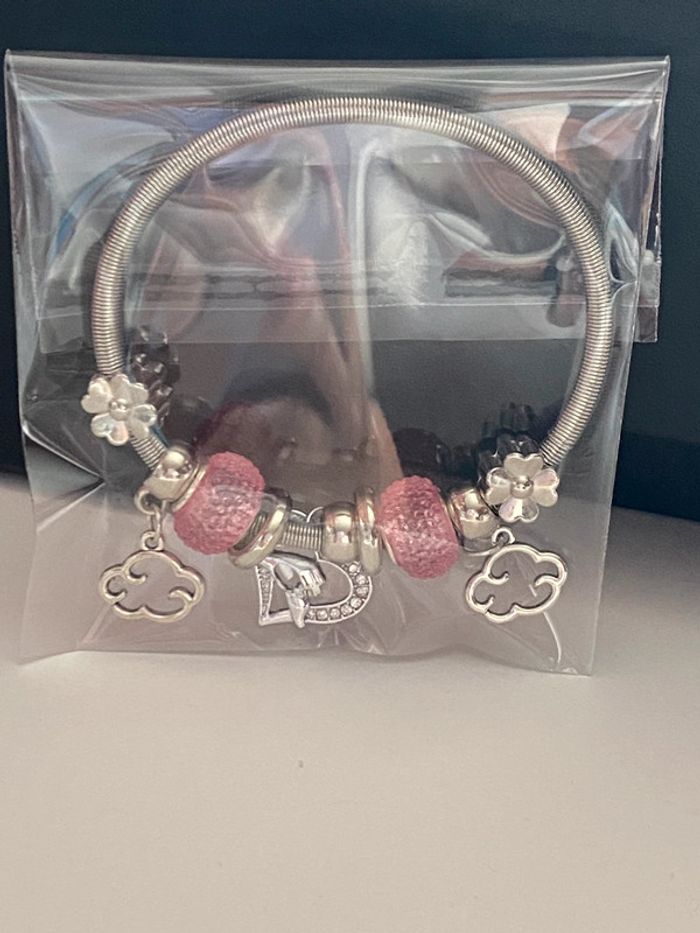 Idée cadeau Noël - Très joli bracelet avec breloques rose et argenté