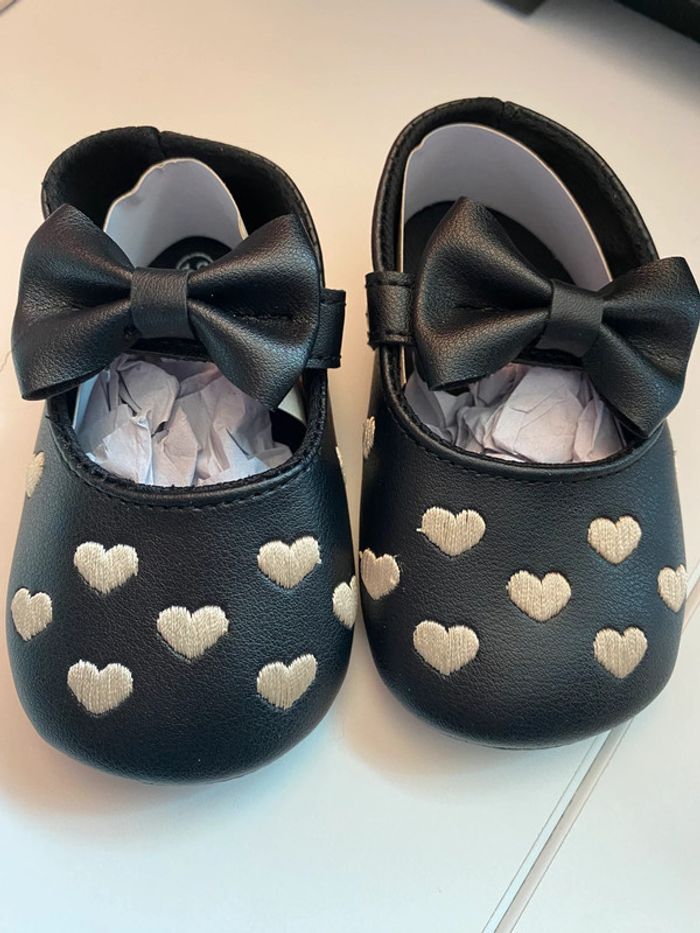 Ballerines pour bébé noir et beige avec coeur et petit noeud - photo numéro 1