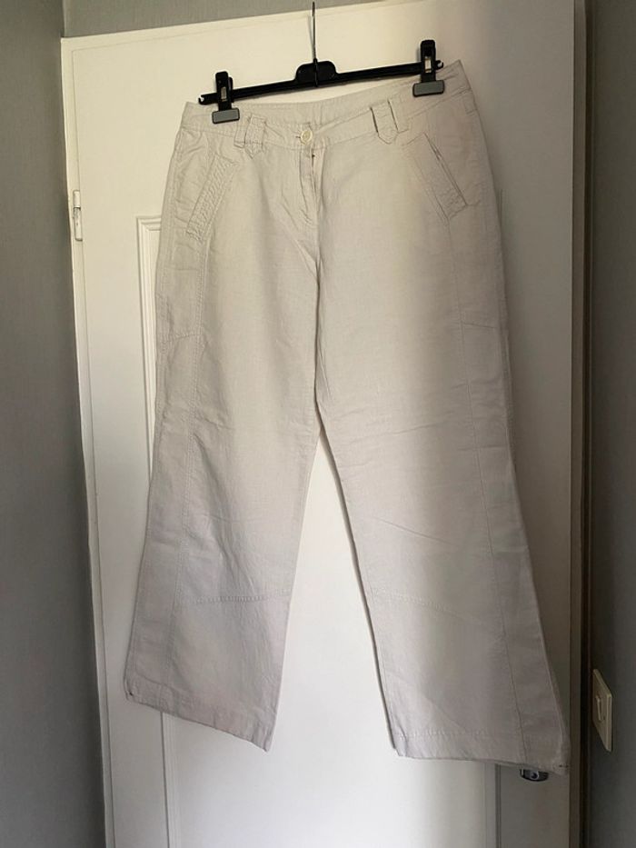 Pantalon crème lin et coton Camaïeu taille 40 - photo numéro 1