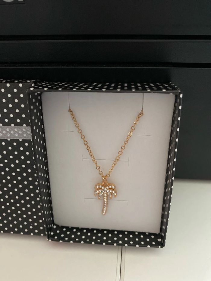 Collier doré  pendentif palmier avec brillant - photo numéro 1