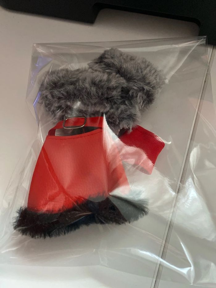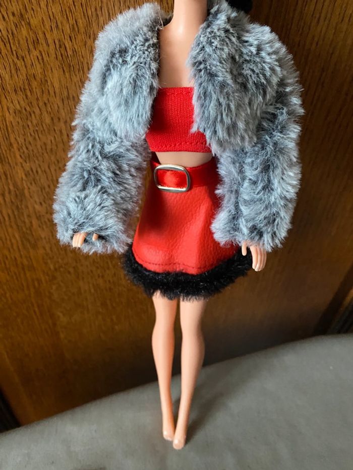 Vendu sans la poupée Comprenant : 1 veste fausse fourrure 1 haut rouge 1 jupe imitation cuir