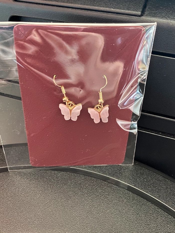 Très jolies boucles d’oreilles papillon rose