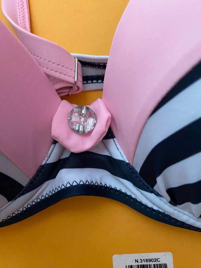 Haut de maillot de bain rose et rayé noir et blanc - photo numéro 1