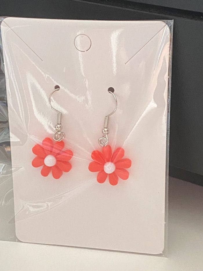 Très jolies boucles d’oreilles fleur rouge