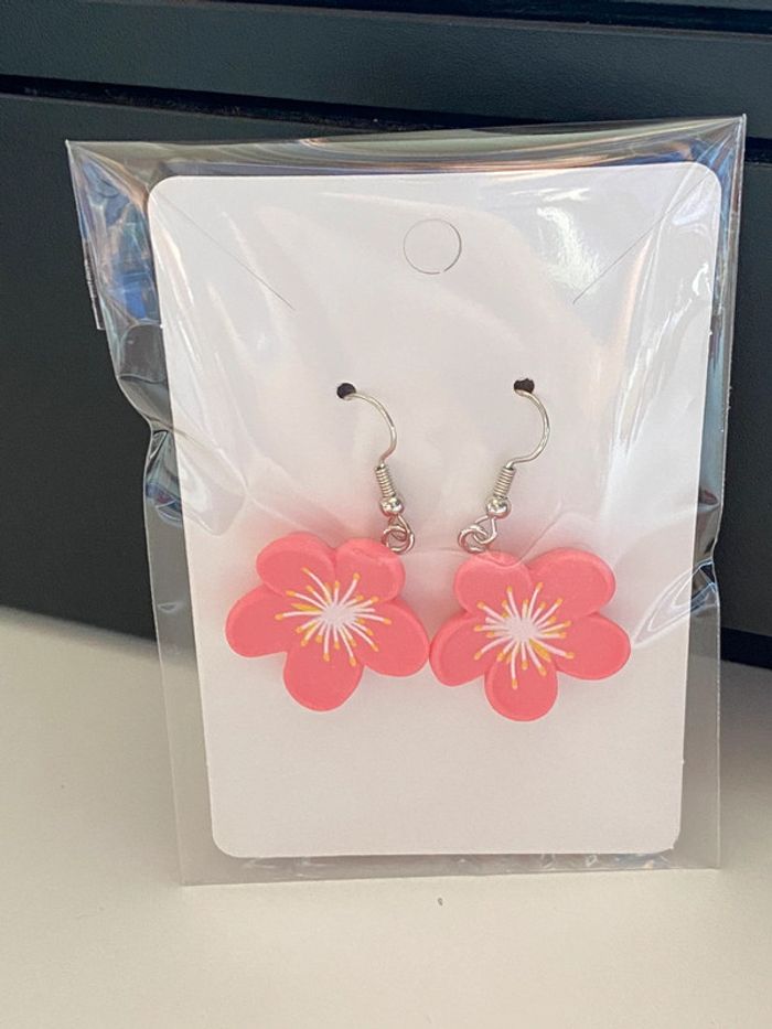 Très jolies boucles d’oreillers fleur rose