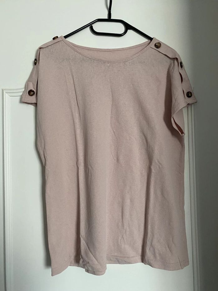 Tee shirt beige rosé à boutons taille XL - photo numéro 3