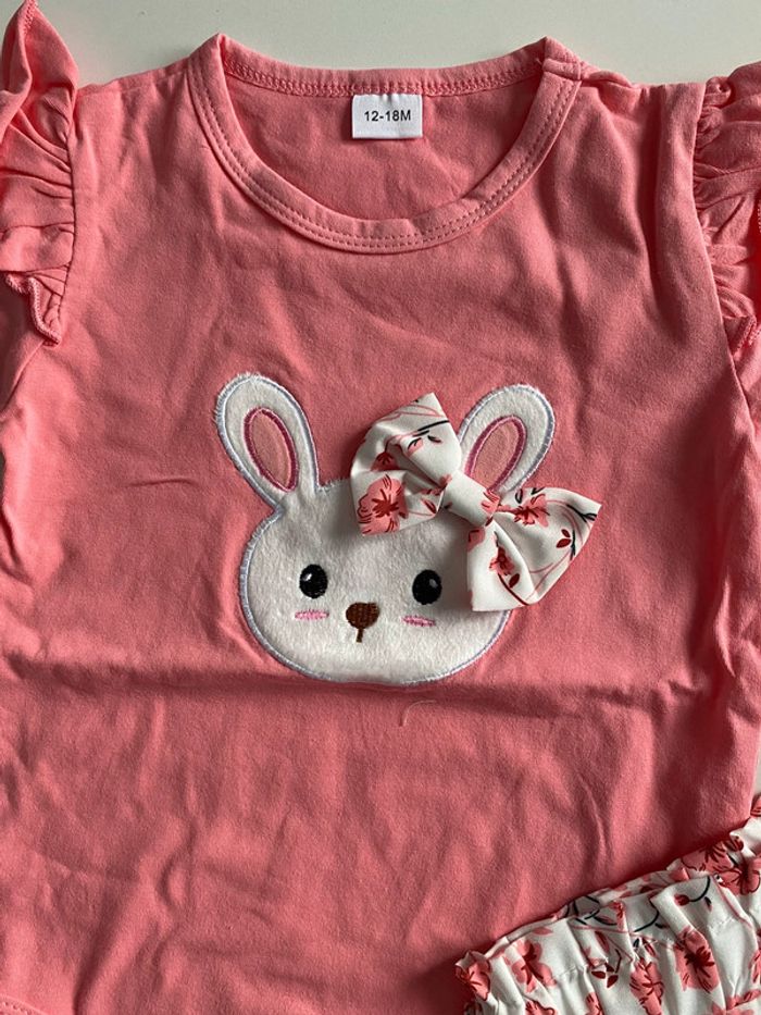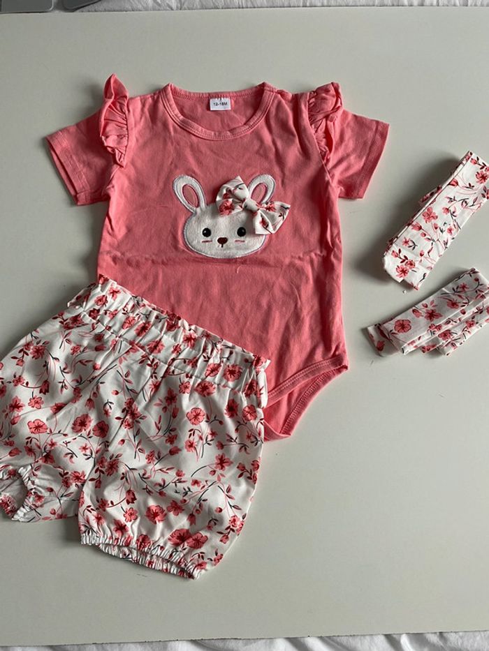 Barboteuse rose avec tête de lapin Short à fleurs Bandeau Ceinture