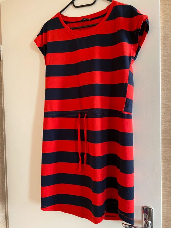 Robe plage bleu marine et rouge ceinture cordon taille S - photo numéro 1