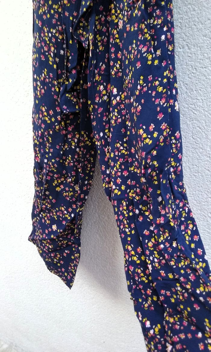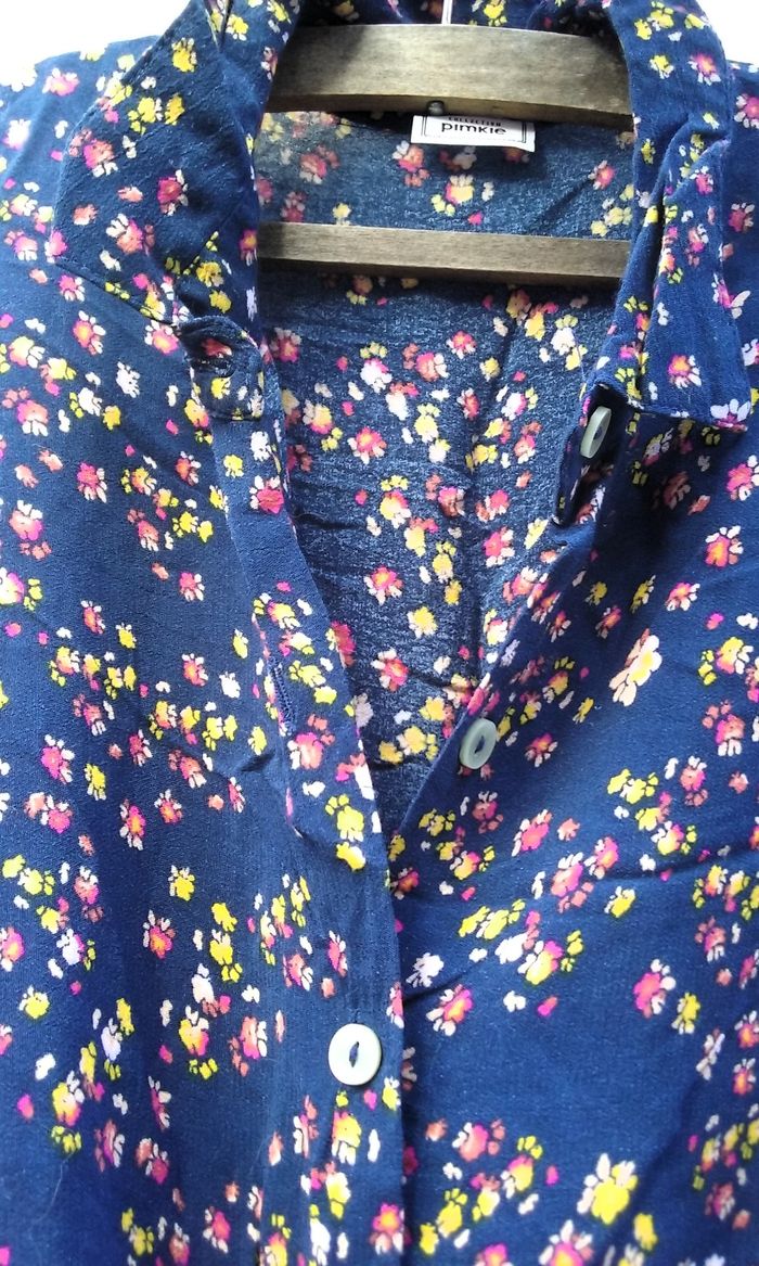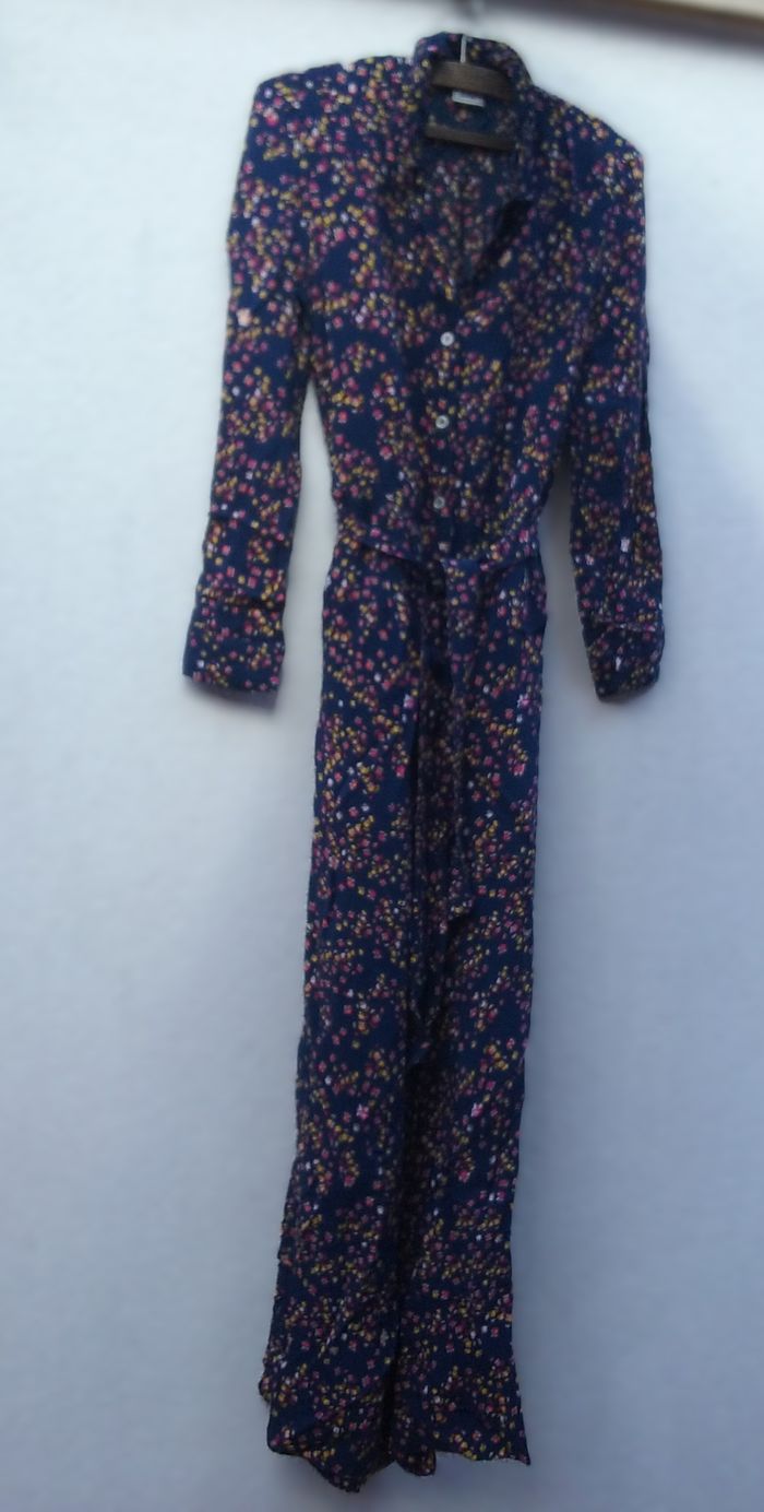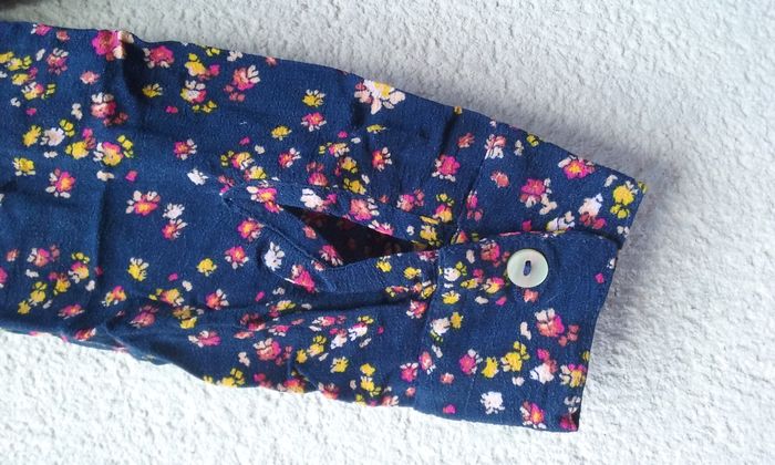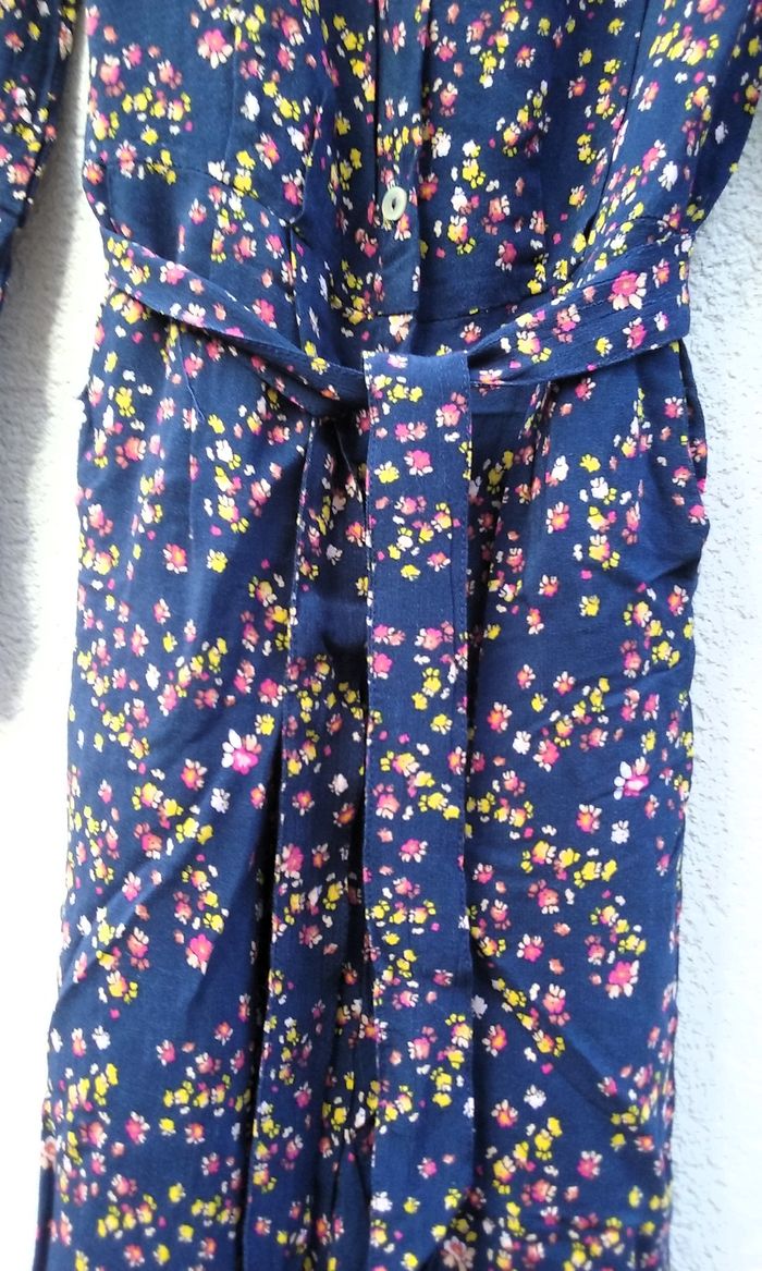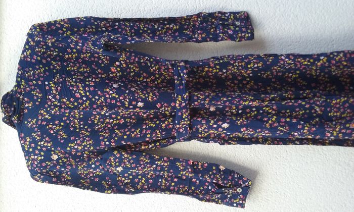 Tissu très léger, fermeture boutonnée, 1 ceinture, 2 poches invisibles, attention coloris bleu marine très foncé!