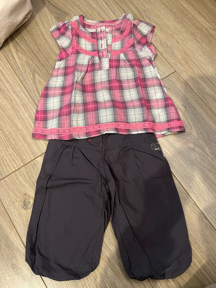 ensemble orchestra fille Blouse manches courtes couleur rose, pantalon gris taille 6 mois très bon état maison sans tabac ni animaux maman prenant soin du linge #liliesouris #Combourg #Dinan #saintmalo #été2025 #orchestra #fille6mois #orchestra6moisfille #ete #2025 #tuniqueete #carreaux #orchestrafille #blousefille