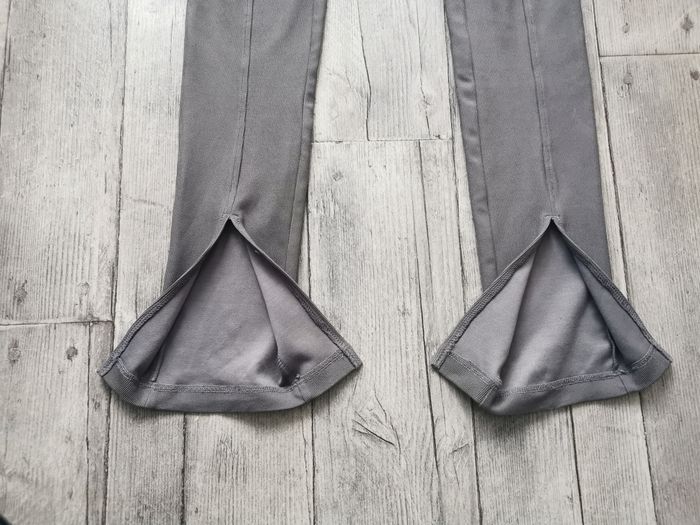 Pantalon slim H&M gris, évasé en bas, taille haute, très bon état.