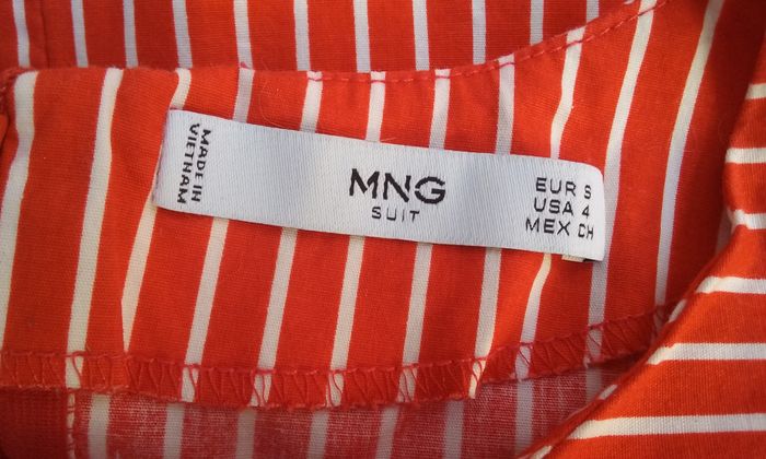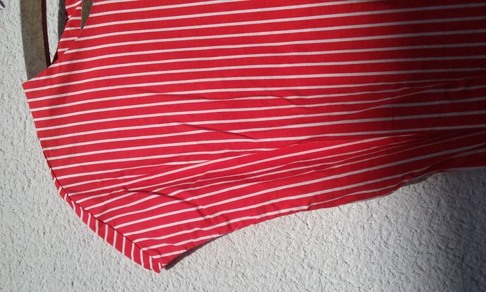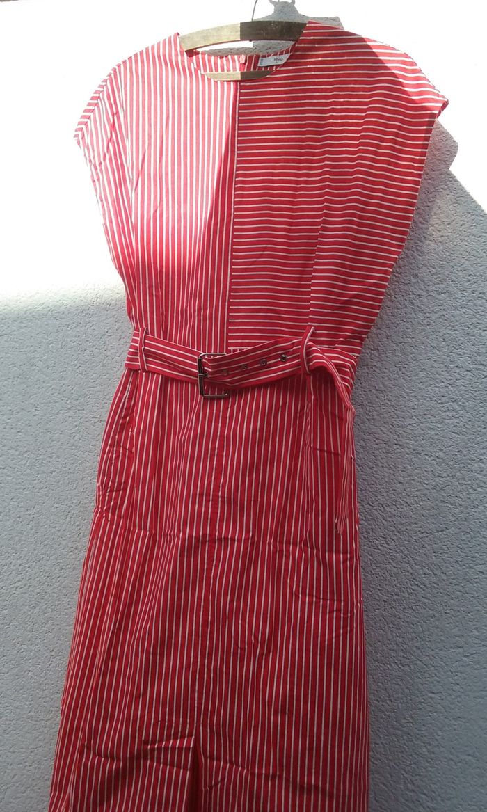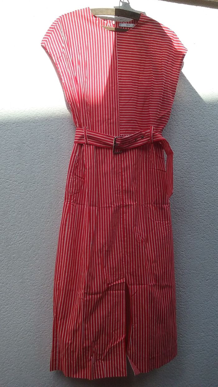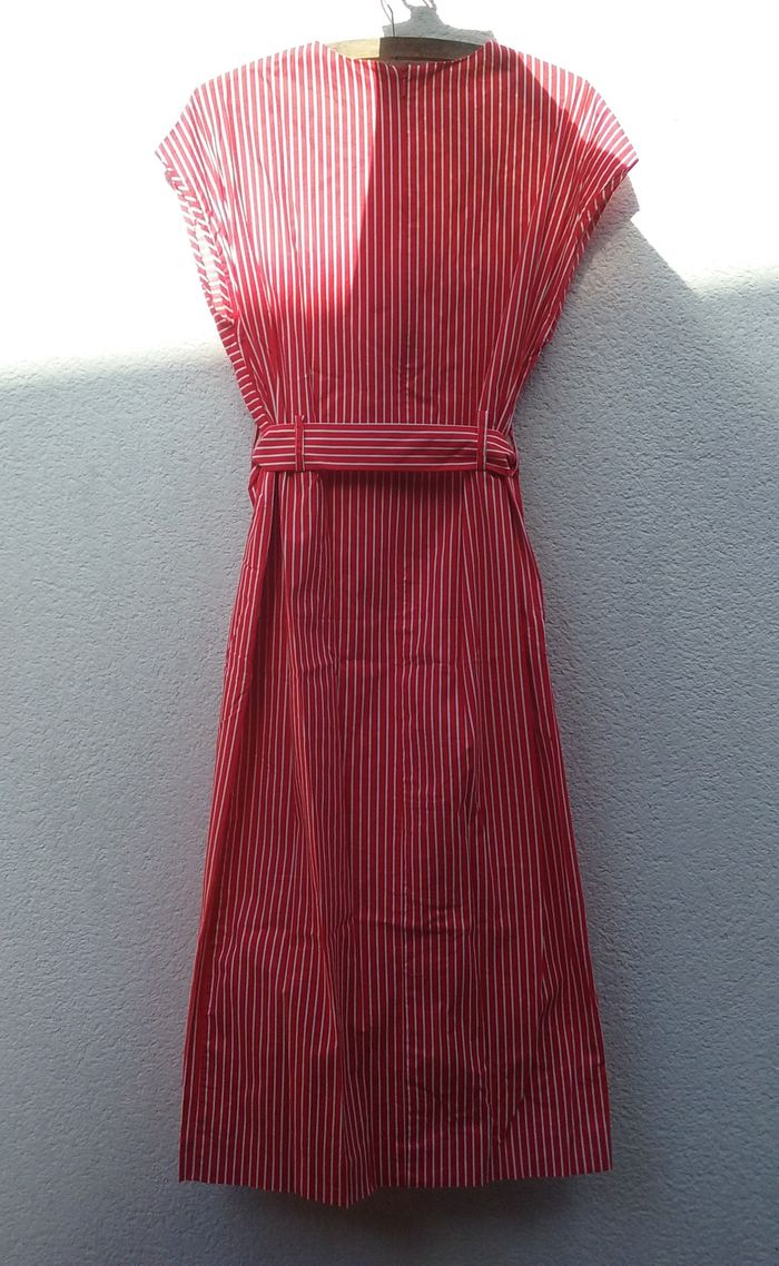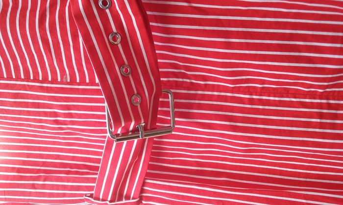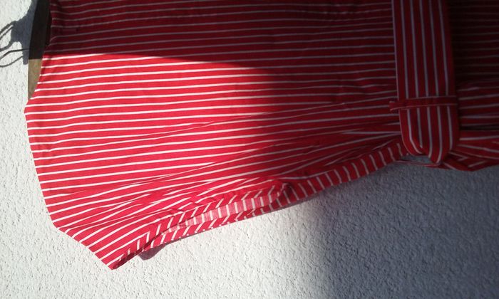 Fermeture zippée au dos, ceinture tenue par des passants et réglable, 2 poches invisibles, coloris rouge et blanc.