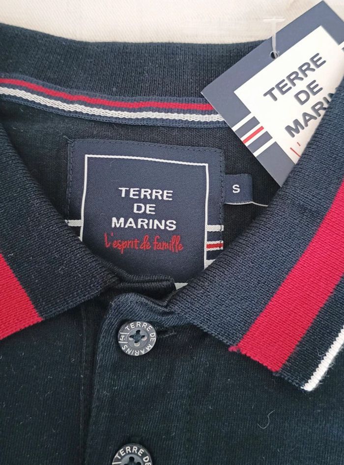 Polo manches longues pour homme ou femme taille S marque Terre de marins couleur bleue marine Longueur 70 cm Aisselle à Aisselle 50 cm Manches 62 cm
