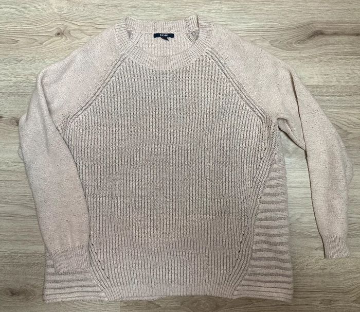 Pull chaud beige maille , ouverture dans le dos, très bon état, taille L, marque Kiabi