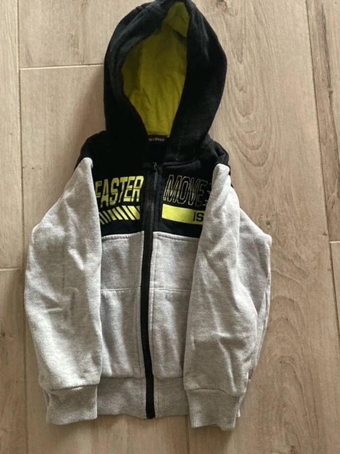 Gilet à capuche gris, noir et jaune fermeture par zip Très bon état Taille 6 ans Maison non-fumeur Envoi rapide et soigné