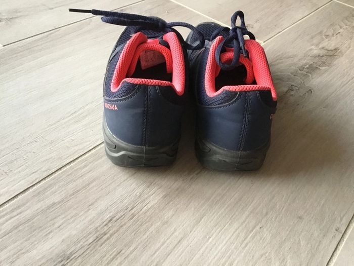 Chaussures de randonnée bleue marine et corail en très bon état, portées très peu. Légères, elles assurent une bonne accroche. Système d’amorti talon exclusif, confort et longévité assurés. Semelle intérieure amovible pour un séchage plus rapide. Elle peut également être remplacée par une semelle orthopédique. Pointure 37 Maison nonfumeur Envoi rapide et soigné