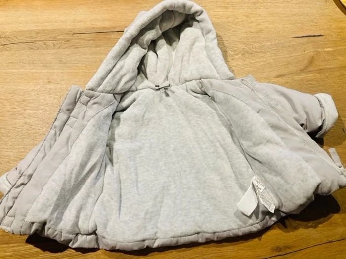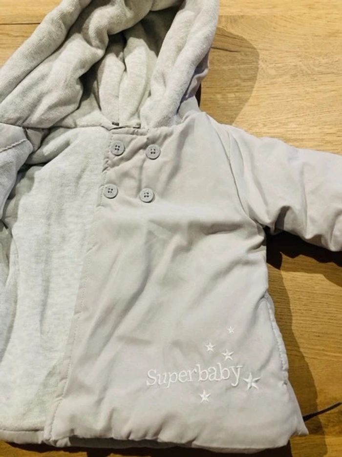 Manteau mixte épais gris chaud avec capuche. Très bon état Taille 3 mois Maison non-fumeur Envoi rapide et soigné
