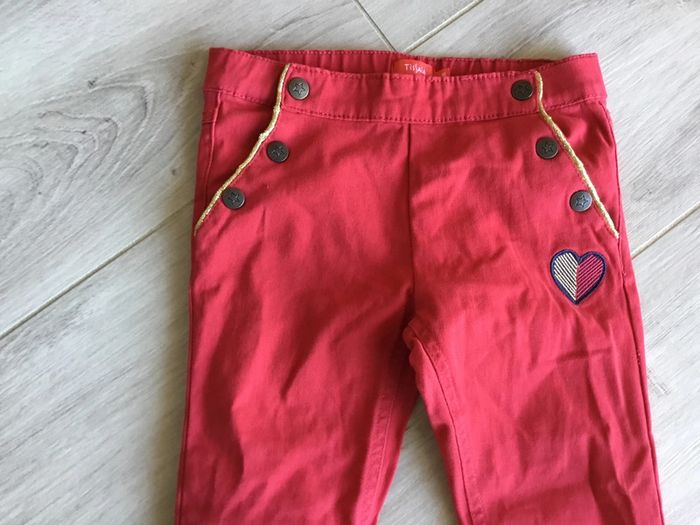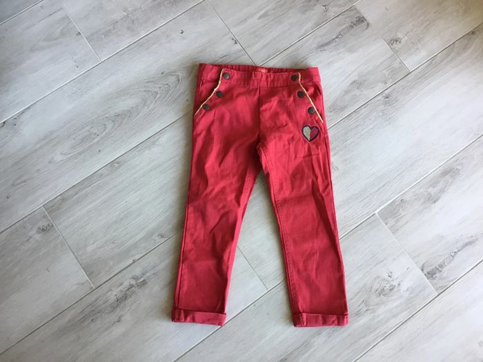Pantacourt rouge avec broderie et boutons sur les côtés des poches. Très bon état jamais porté Taille 7 ans Maison non-fumeur Envoie rapide et soigné