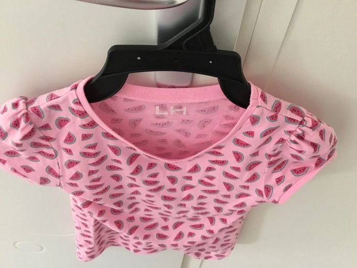 T-shirt à manches courtes rose avec des pastèques Très Bon état Taille 8 ans Maison non-fumeur Envoi rapide et soigné