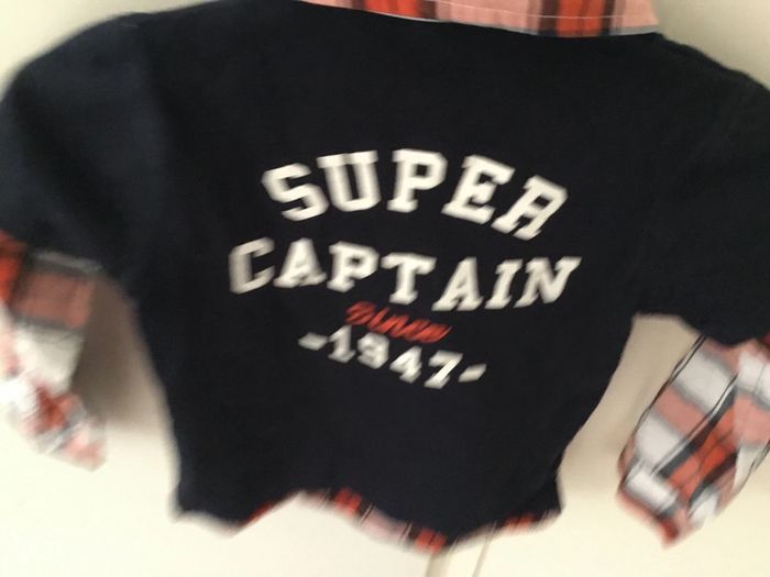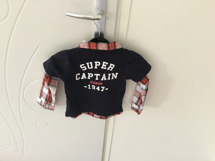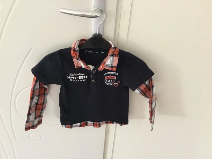 T-shirt chemise à manches longues à carreaux bleue marine et rouge Très bon état Taille 36 mois Maison non-fumeur Envoi rapide et soigné